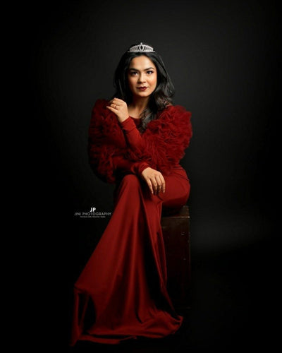Aurelia Gown- Burgundy Boat Neck L-XL